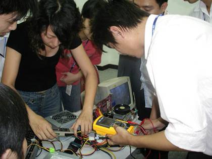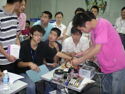 參觀了一上午工廠的學員們肯定有許多感觸,對電源的了解又更深入了一步,下午也是該學習些理論知識了,節能是現今IT行業最熱門的話題,那么PC電源又有哪些節能認證及標準呢?由航嘉創威產品部經理李莊為大家細致的介紹“PC電源節能認證”,并現場演示如何測試電腦的功耗。