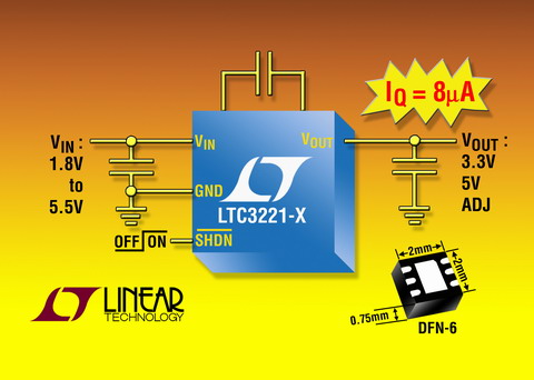 凌力爾特公司日前(Linear Technology Corporation)推出采用緊湊型 2mm x 2mm DFN 封裝的穩(wěn)定升壓型充電泵 LTC3221/-3.3/-5。