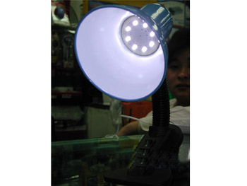 從外觀看,這個臺燈和普通的臺燈別無兩樣,當筆者看到燈罩里面的時候,才發現,它使用的并不是普通的圓形燈泡或者節能燈,而是采用了8顆LED燈。所謂LED就是發光二極管,它的亮度極高,電流需求很小,而且LED的平均壽命長達10萬小時,遠遠高于市場上普通節能燈的使用時間。該款節能燈采用的是普通電話線的接口,可以直接連接到電話機的分機接口上。其實它的原理并不復雜,由于電話線本身帶有電壓,所以可以給節能燈提供電源,而且因為采用的是LED燈,所以功耗就很小。這款電話燈的開關有亮度高、低兩檔可以選擇。