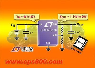 凌特公司推出具有高達80V輸入電壓能力的LT3012B和 LT3013B微功率LDO。LT3012B和LT3013B具有僅為400mV的低壓差,同時提供高達250mA的輸出電流。4V至80V的寬VIN能力使這些器件非常適用于汽車、48V電信備份電源和工業控制應用。此外,這些器件低達40uA(工作時)的非常低靜態電流極其適用于由電池供電的“保持有效”系統,這種系統需要更長的工作時間。LT3013B的電源良好標記具有可編程延遲以指示輸出穩定。