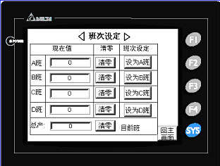 右邊班產:顯示當前班實時累計產量。總產顯示四班當前實時累計產量之和。