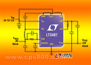 5月24日北京電 凌特公司(Linear Technology Corporation)推出具輸出斷接功能的雙通道(升壓/負輸出)、2MHz DC/DC 轉(zhuǎn)換器 LT3487。其 750mA/900mA 30V 內(nèi)部開關(guān)能夠從單節(jié)鋰離子電池輸送 45mA/15V 和 90mA/-8V 的電流,從而為最新一代的 CCD(電荷耦合器件)成像器提供偏置。其 2.3V 至 16V 的輸入電壓范圍允許使用從鋰離子到多節(jié)堿性/鎳氫金屬電池的多種輸入。LT3487 的恒定開關(guān)頻率為 2MHz,采用纖巧扁平電容器和電感器,從而產(chǎn)生易于濾波的低噪聲輸出。肖特基二極管集成到該集成電路內(nèi)部,而輸出電壓每通道僅用一個電阻就可以設置,從而減少了外部組件數(shù)。LT3487 采用 3mm x 3mm DFN 封裝,整個解決方案的高度低于 1mm,僅占用 50mm2 的面積。