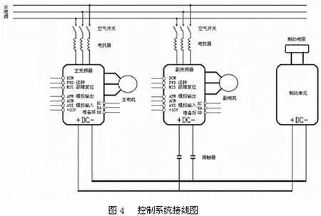 (4)通過連鎖接觸器來控制變頻器的DC到共用母線的聯絡;