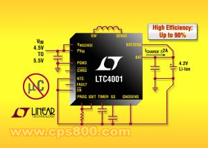 凌特(Linear)推出能提供2A電流的高效開關模式電池充電器LTC4001,其輸入電源電壓范圍在4.0V至5.5V之間,該器件用于單節(jié)4.2V鋰離子電池/鋰聚合物電池,可在不損失電路板空間的前提下最大限度地降低熱耗散。獨立工作無需外部微處理器實現(xiàn)充電終止。就安全和自主充電控制而言,LTC4001具有自主停機、電池預查驗、熱敏電阻輸入以實現(xiàn)合格溫度的充電、遠程檢測、充電結束指示和可編程充電終止定時器等特點。