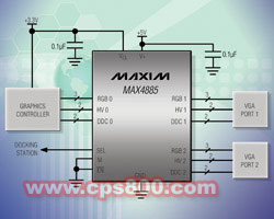 MAX4885也可以用于高分辨率模擬視頻顯示器,以支持多路輸入信號(hào)接入顯示器。