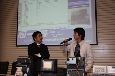 西門子專員將轉赴上海、宣講教育合作項目的消息在師生中引起了強烈的反響。同濟大學校園內牽起了一陣西門子自動化熱潮。蕓蕓學子以青年人特有的熱情和活力表示他們對西門子公司的尊敬和加入西門子自動化事業的期望。5月16日,活動現場座無虛席,掌聲不斷。西門子小型PLC產品經理宋柏青先生結合最新S7-200CN做了精彩的demo演示,為師生學習、研究自動化提供了新的視角。西門子教育合作項目專員元娜女士針對項目細節,展示了未來合作的光明前景,引起了師生們的濃厚興趣。