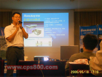 受臺風(fēng)“珍珠”的影響,南昌也下起了小雨,天氣變得有些陰冷,但是航嘉產(chǎn)品交流會的會場里面卻是一片熱火的景象。會議正式開始前,航嘉工作人員給到場的嘉賓播放了2006年航嘉春節(jié)晚會上由電腦部件事業(yè)部員工編導(dǎo)并演出的音樂小品劇---“源”分。搞笑的服裝和滑稽的表演引得會議現(xiàn)場笑聲不斷……