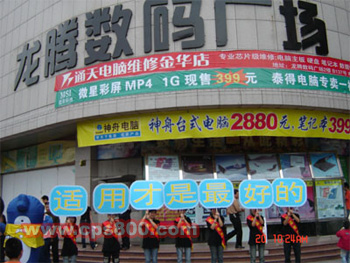 航嘉的巡展走秀活動得到了航嘉在金華代理商——金華金達電腦公司的積極配合。金華公司經理袁錦先生走在了隊伍的最前頭,在賣場內向經銷商宣傳航嘉產品知識。