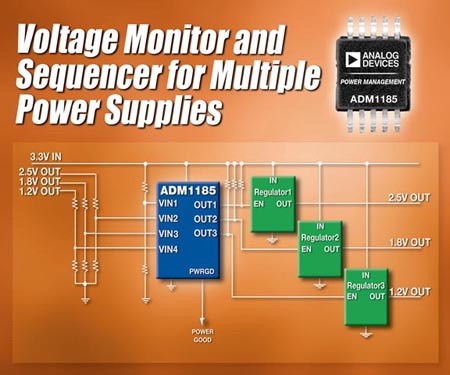 29日,美國模擬器件公司(簡稱ADI)推出ADM1185高精度、靈活的四電壓監視和時序控制器,擴展了其電源時序控制器和監控系列產品,可防止通信基礎設施設備中的欠壓情況發生。ADM1185四電壓監視和時序控制器適合采用多個電源供電的系統,它需要時序控制器確保按照控制的方式對電源電壓上電以防止設備損壞。ADM1185為多達四個電源電壓提供電壓監視和時序控制功能,從而可以有效地控制電源的上電順序并且監視系統以確保一旦系統出現故障則快速斷電。