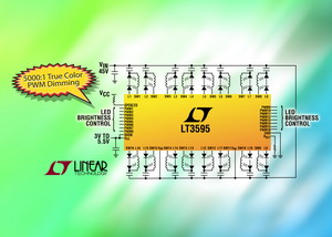 凌力爾特公司(Linear Technology Corporation)推出 45V、2MHz、DC/DC 降壓模式轉(zhuǎn)換器 LT3595,該器件用作 16 通道恒定電流 LED 驅(qū)動(dòng)器。LT3595 的每個(gè)通道可以驅(qū)動(dòng)多達(dá) 10 個(gè)串聯(lián)的 50mA LED,從而總共能驅(qū)動(dòng)多達(dá) 160 個(gè) 50mA 的 LED,并實(shí)現(xiàn)高達(dá) 92% 的效率。LT3595 的多通道能力使其非常適用于大型 TFT-LCD 背光照明應(yīng)用。16 個(gè)通道的每一個(gè)都是獨(dú)立工作的,并能以高達(dá) 5000:1 的調(diào)光比調(diào)光。2MHz 固定頻率、電流模式架構(gòu)在寬輸入和輸出電壓范圍內(nèi)提供穩(wěn)定工作,同時(shí)最大限度地減小了外部組件尺寸。電源開關(guān)、肖特基二極管和補(bǔ)償組件都在內(nèi)部,可組成占板面積非常小的解決方案,同時(shí)最大限度地降低了組件成本。其耐熱增強(qiáng)型 5mm x 9mm QFN 封裝確保解決方案占板面積非常緊湊,并驅(qū)動(dòng)高達(dá) 30W 的 LED。