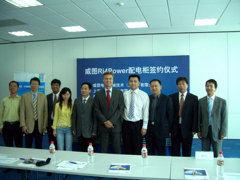 2007年10月12日堅持以創新引領未來的威圖公司與上海電器廠和貴州同升有限公司一起舉行了威圖Ri4Power配電柜簽約儀式,這是其新品在國內的首次推出,也是兩家公司與威圖的第一次合作。威圖董事總經理Mr. Palm先生表示,這款產品是威圖8年創新心血的結晶,去年已經于德國的漢諾威展會上展示過,它集于了威圖產品安全靈活、通用系統的基本優勢。威圖目前基本上每3年左右的時間,都有新品推出。隨著中國市場的日益壯大,在中國這個平臺上切實客戶的需求已經開發了越來越多的新品。合作方上海電器公司總經理倪銀豐先生認為,雙方合作既是共同愿望的體現,也符合共同利益,相信隨著這次合作成功一定會為上海電器公司的電器產品進一步拓展市場奠定基礎。貴州同升有限公司總經理張旭東先生因為上個月威圖的第一批訂單已經到達工廠裝配現場,這個月底將會正式交付使用,他親眼目睹了Ri4Power的實質功能,替代了原來的組合,產品線更加自由和靈活,PLC和低壓可以同步控制,所以他對該款產品在低壓市場的全面推廣充滿信心。