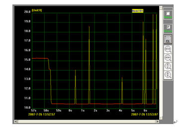 如果我們想看數(shù)據(jù)在巡檢時候的波形,也可以打開波形顯示,觀察數(shù)據(jù)巡檢時候的數(shù)據(jù)變化曲線。在波形圖中,我們可以通過Ultralogger軟件在PC上很直觀地看到電壓電流變化曲線,