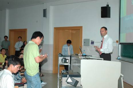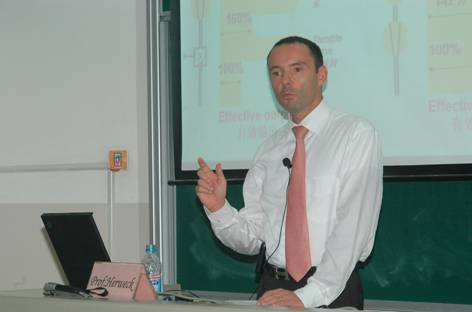 隨后作為受聘教授,何維克先生為同學們上了別開生面的一課。教室內濟濟一堂,容納了大概150多名學生,其中很多人是因為去年何維克先生的精彩發言慕名而來的。何維克先生入場時掌聲雷動,同學們報以極大的熱情來歡迎何維克先生的到來。今年的講座以創新為題,何維克先生與同學們探討了創新在當今社會對于企業發展起到的關鍵作用,并鼓勵大家勇于創新。講座得到了熱烈的反饋,之后更有許多同學踴躍發問,提出了很多很有價值的問題,比如西門子如何實行創新型管理等等,甚至還有同學詢問有關RFID,MES等具體技術問題。何維克先生都耐心的給與了詳盡的回答。走訪結束后,同學們普遍感到受益匪淺。何維克先生的教導和鼓勵更堅定了他們未來求學之路的信念!