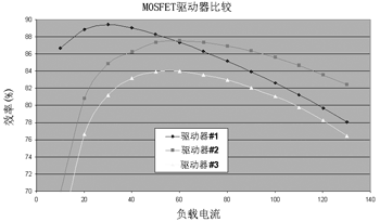 設計人員面臨的挑戰之一是驅動器與MOSFET的正確匹配,從而在給定的成本范圍內實現最大可能的性能。如圖3所示,對于個給定的MOSFET組合,選擇不同的驅動器IC時效率曲線的形狀完全不同。這個問題會轉化成工程設計時間,最終使電腦制造商節省更多成本。