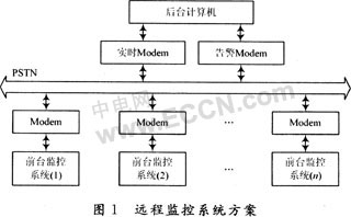 監控中心需要配置兩個調制解調器(Modem),其中一個是實時Modem,用于采集前臺電源設備的實時數據,設置電源設備的運行參數以及進行遙控操作等;另一個作為告警Modem,當某被控端局的電源產生告警時,若該端局當前并未通過實時Moctern與監控系統進行通信,則電源監控前臺將撥通監控中心的告警Modem,通過他來傳送故障電源的告警信息,以提醒主控室操作人員及時快速地對現場問題做出反應,將損失降低到最低限度。各被控局端電源設備的監控前臺均只需配置一個Modem,用于向監控中心傳送數據及告警信息。在數據量不大、通信數據頻率不高的時候,使用調制解調器(Modem),并利用電話線路進行數據傳輸是一種非常可靠的方法,同時廉價的初期投資費用也是該方案的優勢所在。