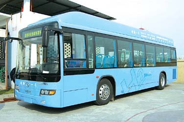 這是上海神力科技有限公司(簡(jiǎn)稱神力科技)自主研制的新一代燃料電池城市客車。神力科技在國(guó)家"十五"863電動(dòng)車重大專項(xiàng)資金支持下,開創(chuàng)性地研發(fā)成功常壓空氣、低壓氫氣運(yùn)行的轎車用和城市客車用燃料電池發(fā)動(dòng)機(jī),主要技術(shù)指標(biāo)達(dá)到了國(guó)際先進(jìn)水平。