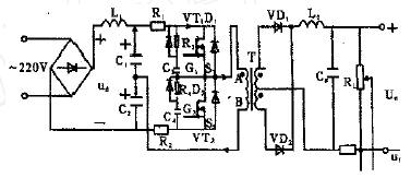 當VT2 開通,VT1 關斷時,同樣可推出上述結論:U0 上正下負。U0 的大小取決于控制電路使VT1 、VT2 的導通時間。