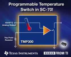 日前,德州儀器 (TI) 宣布推出采用業(yè)界最小封裝SC70、工作電源電壓范圍最大的低功耗電阻可編程溫度開關(guān) —— TMP300。該器件允許簡便的溫度監(jiān)測和控制,微小型封裝使其成為電源系統(tǒng)、DC/DC 模塊、熱監(jiān)控與電子防護(hù)系統(tǒng)的理想選擇。