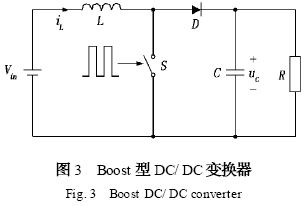 Boost型變換器電路如圖3所示。用于計算機模擬的電路中,取電源電壓Vin=10V、電感L=1mH、電容C=12μF。按前述方式生成的各種混沌開關調制信號的平均頻率為10kHz,平均占空比取為0.5。為對比,文中所給出的結果均以占空比等于0.5的標準PWM為比較對象。為保證結果的可靠性,模擬中使用的軟件已應用標準電路結果進行了校驗。