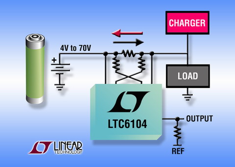 凌力爾特公司(Linear Technology)推出獨特的高端電流檢測放大器 LTC6104,該器件由兩個完整的放大器組成,具有一個組合式單端雙極性輸出。雙放大器拓撲非常適用于雙向工作,每個電流檢測方向的增益可編程性能使該器件具有極高的靈活性。兩個單獨的放大器允許監視單個電流檢測電阻或多個單獨的檢測電阻。LTC6104 的典型應用包括電池充電電路、H 橋式驅動電路和伺服控制。