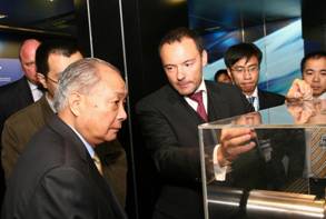 3月9日,西門子自動化與驅動集團的超大型全球巡展活動“自動化之光——未來城” (exiderdome)巡展迎來了兩位特別的客人——中科院院士,中國自動化學會理事長,信息技術科學部副主任戴汝為先生和中科院院士,中國自動化學會副理事長,北京生物工程學會生物信息學專業委員會主任李衍達先生。隨行的還有中國自動化學會第四---第八屆副理事長孫柏林先生,中國科學院自動化研究所副所長王飛躍先生,他們在西門子(中國)有限公司執行副總裁及自動化與驅動集團總裁何維克先生等的陪同下興致勃勃地進行了參觀。