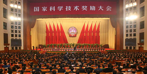 中共中央、國務院27日上午在北京隆重舉行國家科學技術獎勵大會。黨和國家領導人胡錦濤、溫家寶、曾慶紅、李長春出席大會并為獲獎代表頒獎。溫家寶代表黨中央、國務院在大會上講話。李長春主持大會。國務委員陳至立在會上宣讀了《國務院關于2006年度國家科學技術獎勵的決定》。