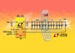 凌力爾特公司(Linear Technology Corporation)推出無電感器型、低噪聲、高效率 LED/CAM 驅動器 LTC3207,該器件用于蜂窩電話顯示屏和照明。LTC3207 提供 12 個可獨立配置的電流源,用于主、副、RGB、輔助或通用(GPO)顯示屏/照明燈/輸出,該集成電路還具有驅動一個400mA 大電流 LED 相機燈的能力。通用電流源具有帶獨立調光、亮度、閃光和灰度等級控制功能的數字控制器,可通過一個簡單的兩線式 I2C 串行接口來設置。相機閃光燈(脈沖)或手電筒(連續)的電流級可通過 CAMHL 引腳實時選擇,還可以通過 I2C 端口控制。LTC3207 的 2.9V 至 5.5V 輸入電壓范圍已經為單節鋰離子/聚合物電池應用而優化。用鋰離子電池(標稱值為 3.6V)驅動時,效率達到 92%,靜態電流僅為 500uA,從而最大限度地延長了電池工作時間。轉換率受限的開關操作降低了傳導和輻射噪聲(EMI)。
