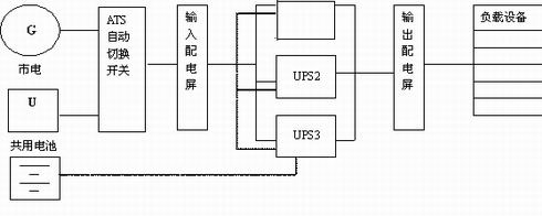 3.原先每臺UPS擬配置的1小時電池,遇停電電池放電且其中有任何一臺UPS故障時,仍能將該故障UPS所接的1小時電池,轉接給其余正常工作的UPS使用,以保障所投資電池的使用率及享有充足的放電時間。