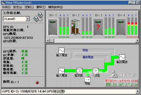 8.針對用戶的第8項需求,臺達NT系列UPS有標配以太網卡接口,并有以太網卡監控卡可提供選購,可方便地提供網絡遠端監控。監控軟件圖面如下圖三所示。可方便用戶同時對3臺或更多臺UPS同時作集中監控。
