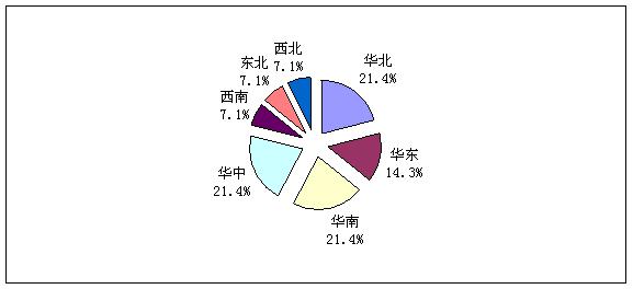 調查顯示,此次被調查的電源企業主要集中在華北、華東、華南和華中地區,四個地區電源企業占據整體調研樣本的78.6%。西北、西南和東北地區企業數量較少,所占比例較低,均為7.1%。(見圖1)