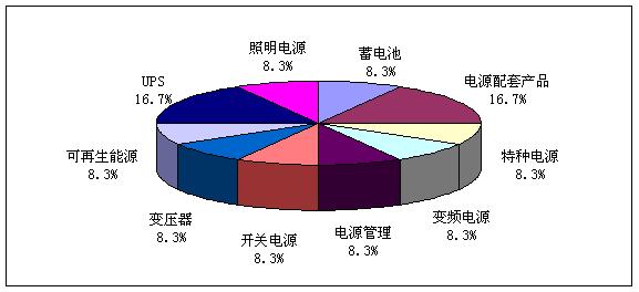 對于電源企業經營范圍來講,此次調研為了真實體現各個子行業的實際情況,采取對子行業的平均抽樣調研方法。電源配套產品和UPS產品所占比例為16.7%,略高與其他子行業的分布水平。其他子行業的成功樣本比例均為8.3%。(見圖2)