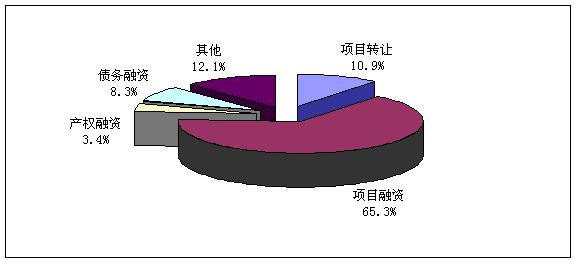 本次調研結果顯示,項目融資所占比例最大,占到總體的65.3%,項目轉讓的企業位居第二,比例為10.9%。說明企業開發新項目對資金的要求是迫切的。(見圖5)