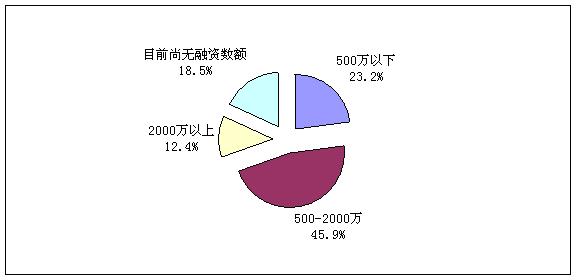 在此次調查企業的融資數額中顯示,企業融資500萬元以下的比例為23.2%,500至2000萬的比例為45.9%,說明企業對資金的需求還是很迫切的。(見圖7)