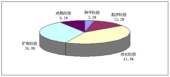 在調查企業所處發展階段時發現,處在成長階段的企業最多,占到了41。5%,其次是處在擴張階段的企業,占到了34%。