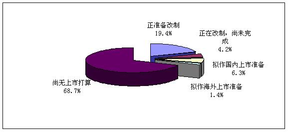 對于上市情況的調查中,企業無上市打算比例較大,為68.7%,正準備改制的比例為19.4%,其他情況都較小。這說明電源企業對公司上市的問題并不是太破且,從另一個角度講,也說明目前電源企業真正具備上市能力的公司并不多。(見圖9)