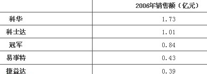 2006年,中國中大功率UPS市場的品牌格局中,以銷售額衡量,科華加大行業銷售力度,增加新品,居于市場第一;科士達充分利用渠道優勢的同時,加強新行業開發,拓展其他行業市場,市場占有率占據第二。另外,傳統中大功率UPS電源提供商冠軍也取得了不俗的成績。
