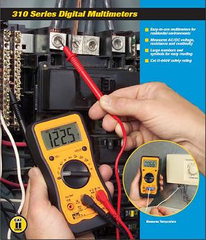 310系列萬用表包括三種型號:61-310基本型具有手動選擇量程、DC電流和電池測試功能;61-312型具有自動量程、交/直流電流、電容、頻率測試、自動關(guān)機和電池不足指示;61-314型具有61-312型的所有功能,且測試值為真有效值。所有型號都具有二極管測試、聲音提示導通和數(shù)據(jù)保持功能。所有產(chǎn)品均符合CAT II-600V耐壓標準,且所有量程范圍均有過載保護。符合人體工程學的外型設(shè)計、防滑外殼和外護套可防止萬用表因跌落而損壞。該系列產(chǎn)品為2年質(zhì)保。