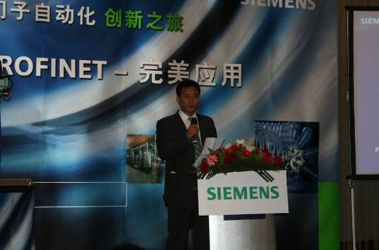 西門子自動化與驅動集團東北區大連辦事處銷售總監杭春萌為大會致開幕詞