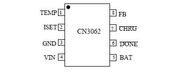 CN3062采用散熱增強型的8管腳小外形封裝(SOP8)。