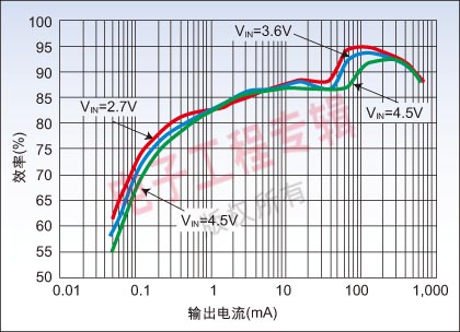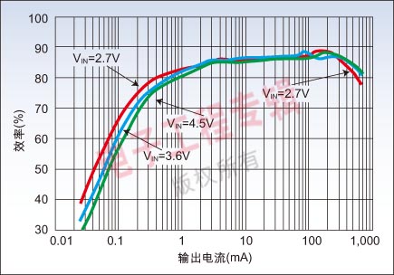 在電源產品的應用過程中,不時有工程師抱怨在實際應用中并無法實現產品聲稱的高效率。事實上,所有高效率指標都是在某些條件下取得的。有的是在滿負載條件下實現的,也有的產品是為不同的負載點優化的。比如美國國家半導體的LM3367超低壓DC-DC轉換器,其效率高達95%,但這是在100mA/2.5V的輸出條件下獲得的,相關的還有輸入電壓,如圖2所示。而在1.8V的輸出電壓上,則最高的效率才達到85%左右。如圖3所示。實際上,在設計中影響指標的還有開關頻率,環境溫度等。