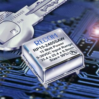 幾年前,15W DC/DC模塊的業界標準還是1.6"×2"(40.6×50.8mm),而當前標準為1"×2"(25.4×50.8mm)。這種創新的RECOM——RP-15xxxxSA resp.RP-15-xxxxSAW標準——占位面積為難以置信的1"×1"(25.4×25.4mm),高度為0.39"(10mm)。