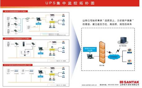 此次技術研討會的主題是“創新&服務”。圍繞這個主題,針對不同行業、不同應用場合的需求特點,結合UPS供電系統的技術現狀及發展趨勢進行整合分析,推出了《供電系統一體化解決方案》(如圖例1和圖例2)和《UPS網絡集中監控管理系統解決方案》(如圖例3),向與會的終端客戶和合作伙伴介紹了UPS應用的新思路。