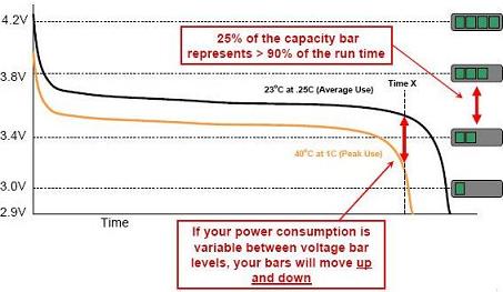 錢金榮表示,TI早在2004年便推出了具備阻抗跟蹤的電池監測產品,如BQ20Z70、BQ20Z80、BQ20Z90以及BQ20Z95,這些產品主要用于筆記本電腦。TI于近期推出了用于手機等設備的電池監測產品BQ27500和BQ27350。BQ27500可用于母板上,BQ27350則主要用于電池包中。錢金榮稱當電池老化時,這些產品的精確度可以達到100%,因此能夠很好的提高電池使用效率。正是因為可以精確測量電池的剩余電量,有廠商甚至利用此功能開始生產以百分比形式顯示剩余電量以及同時顯示剩余使用時間的智能手機。如圖2所示。