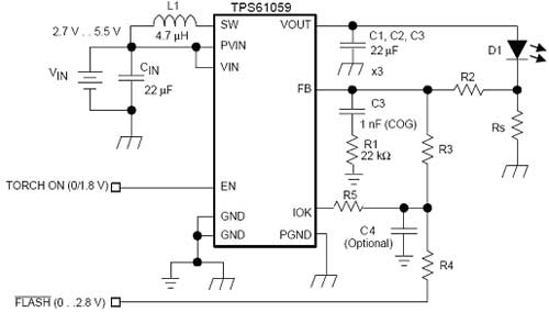 圖3:用于高亮度相機閃光燈LED的高效率DC/DC升壓塊 |