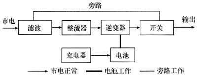 由此可以看到無論是市電供電正常時,還是市電中斷由電池逆變供電期間,逆變器始終處于工作狀態,這就從根本上消除了來自電網的電壓波動和干擾對負載的影響,真正實現了對負載的無干擾、穩壓、穩頻以及零轉換時間。