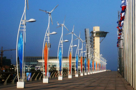 太陽能景觀燈和風能路燈是奧帆中心的一大景觀。這里共安裝了168盞太陽能燈和41盞風能路燈,不僅綠色環保,到了夜間更是青島海岸線上一道耀眼的風景。