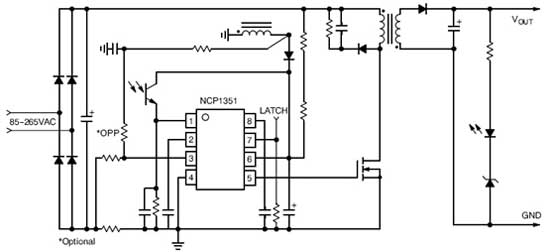 瞄準低功率反激開關電源應用的NCP1351固定導通時間控制器