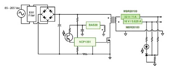 本文接下來具體就NCP1351在40 W打印機電源中的應用設計展開探討,分析打印機電源當今所面臨的要求,以及NCP1351如何滿足這些要求。
