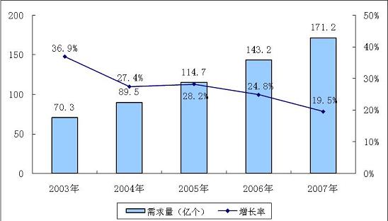 圖 2003-2007年中國MOSFET市場規模(數量)