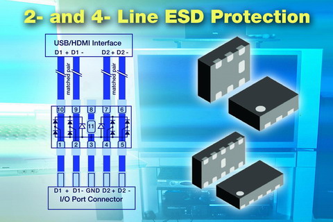 具有 0.6 mm 超薄厚度、可實(shí)現(xiàn)板面空間節(jié)約的 2 線路 VBUS052CD-FAH 采用無(wú)引線 LLP1713 封裝,而 4 線路 VBUS054CD-FHI 采用 LLP2513 封裝。這些保護(hù)陣列采用“流通式”設(shè)計(jì),在 HDTV 以及便攜式游戲系統(tǒng)、MP3 播放器及手機(jī)等移動(dòng)電子設(shè)備的 USB 2.0、HDMI、顯示器端口、eSATA 及 1394/Firewire 應(yīng)用中,支持高速數(shù)據(jù)線的浪涌電阻要求。